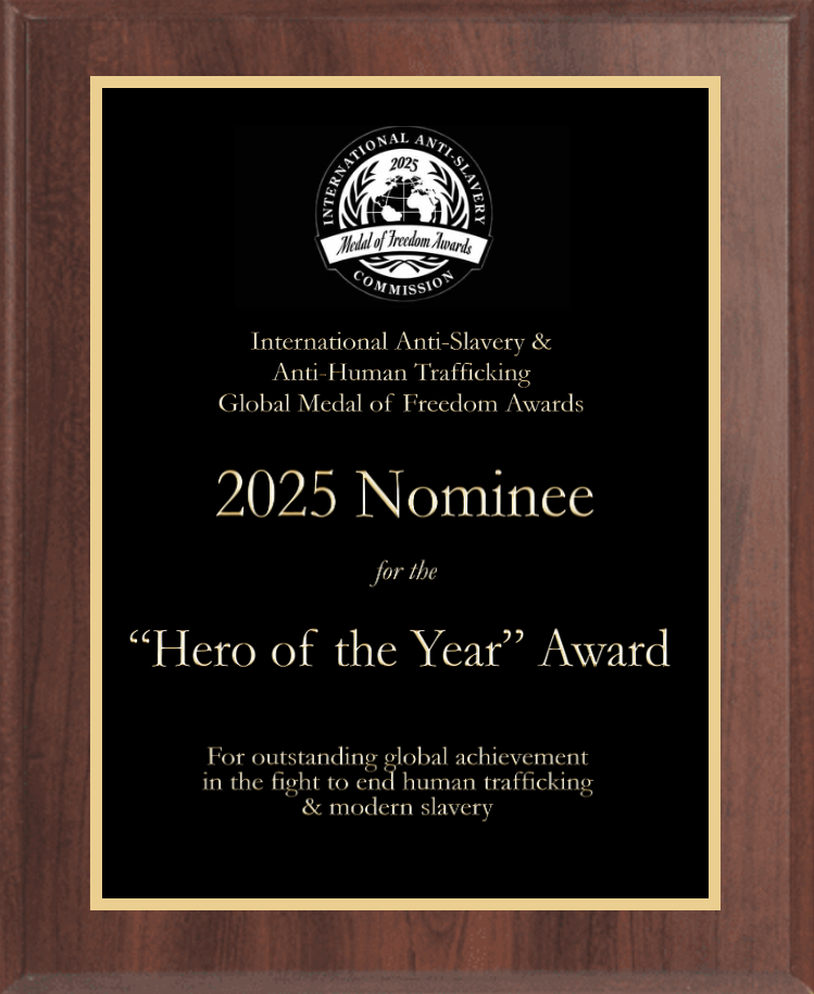 The 2025 International Anti-Slavery & Anti-Human Trafficking Award Art, Music, Media, Journalism “Medal of Freedom” Award is for individuals or groups who produced anti-bullying, anti-slavery, or anti-trafficking programs, books, writing, music, videos, documentaries, performance art, social media, photography, marketing, and social media influencers on a global scale.